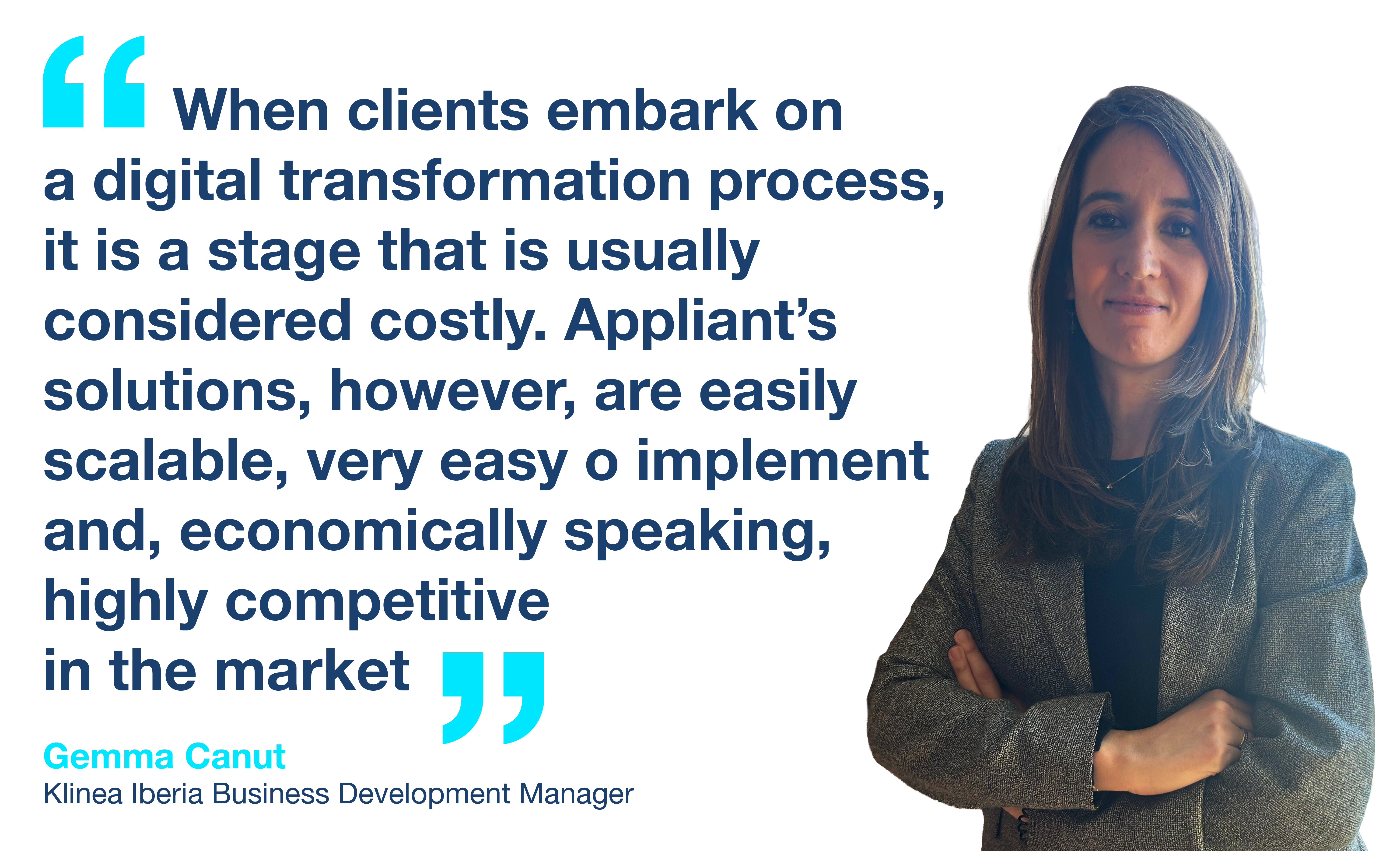 Como explica Gemma Canut, cuando los clientes se embarcan en un proceso de transformación digital, se trata de una etapa que suele considerarse costosa. Sin embargo, las soluciones que ofrece Appliant son fácilmente escalables, muy fáciles de implementar y, desde el punto de vista económico, muy competitivas en el mercado.