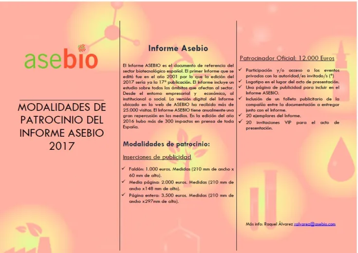 AseBio Patrocinio Informe Asebio 12 de Marzo de 2018 http://www.asebio.com/documents/PatrociniosInformeASEBIO2017_mod.pdf